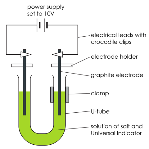 - Wear safety glasses throughout, especially when clearing up the experiment. The products of the electrolysis of the salt solution are all more hazardous than the starting materials.